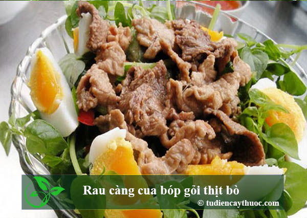- Rau càng cua bóp gỏi thịt bò: là món gỏi chua ngọt, giòn ngon đang dần trở thành món chính trong các bữa tiệc. Không tốn quá nhiều thời gian lại bổ sung nhiều vitamin A và sắt bổ trợ cho người thiếu máu.